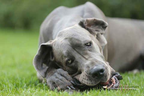 Wer hätte gedacht das ein ganzes Rinderohr in ein Doggenmaul passt ?