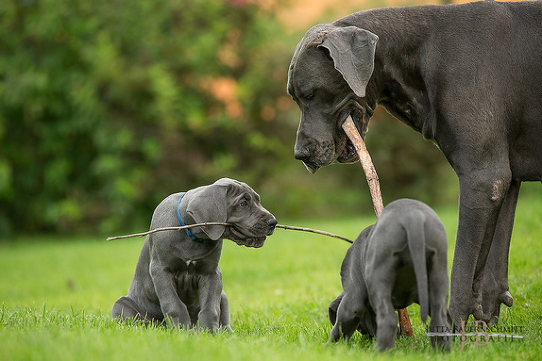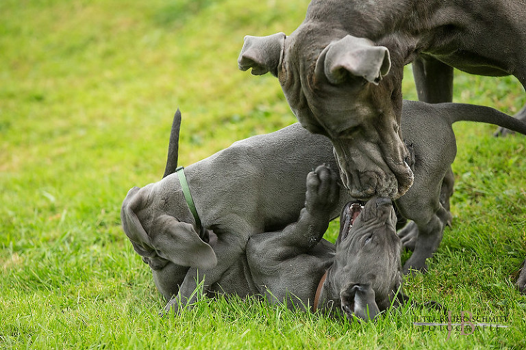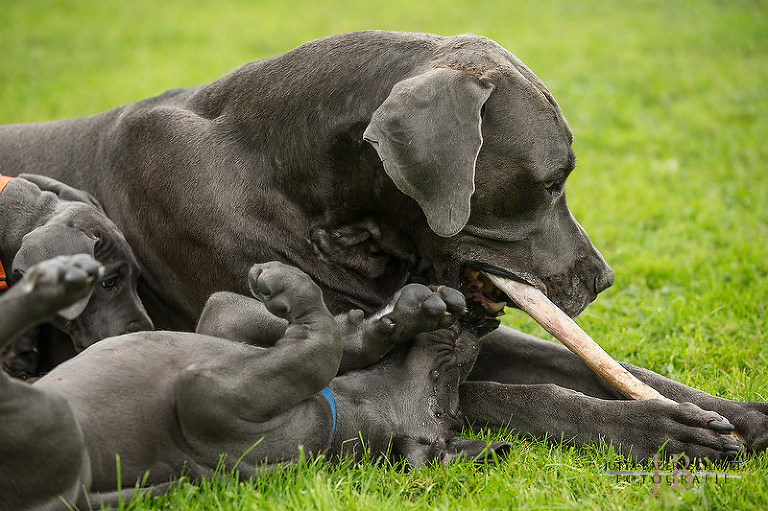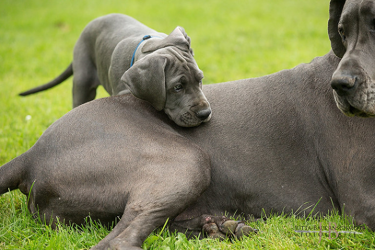 Auch heute noch .. mit 8 Wochen, macht sie den Auslauf mit sauber, will zu den Welpen, spielt mit ihnen, genießt jede Kuschelminute.